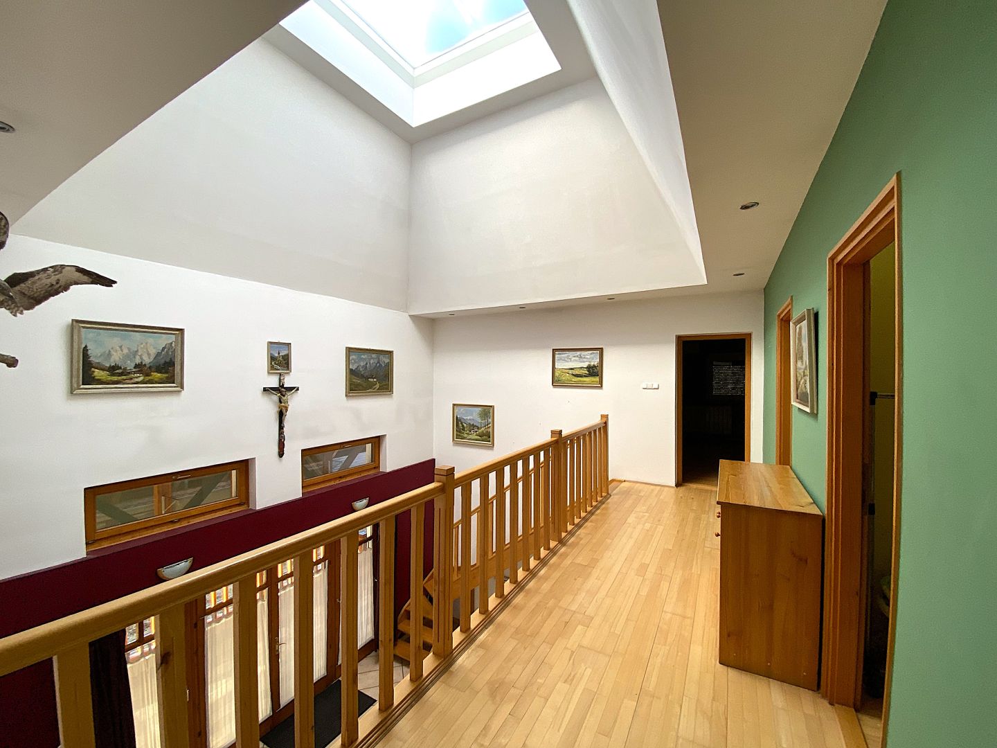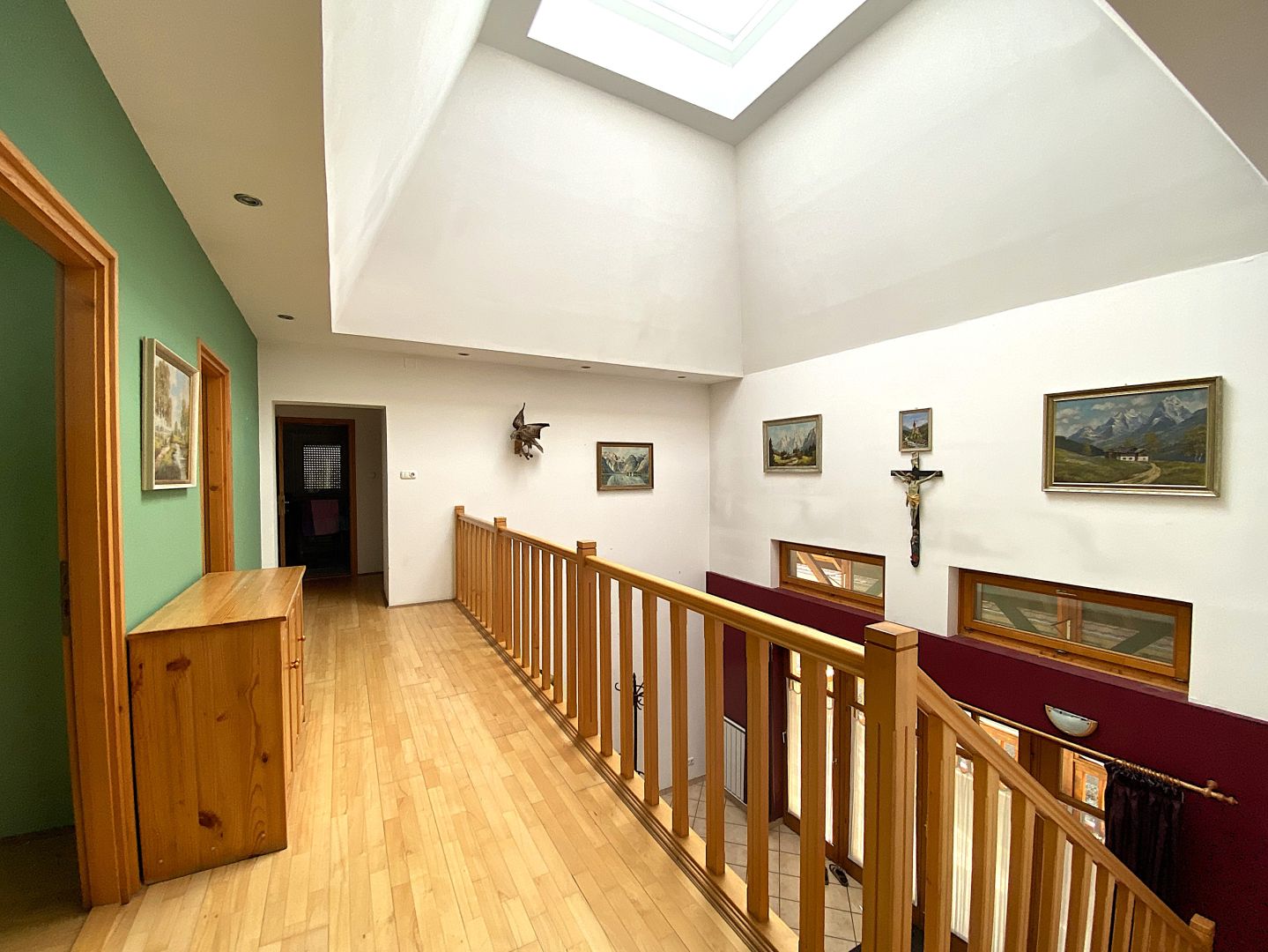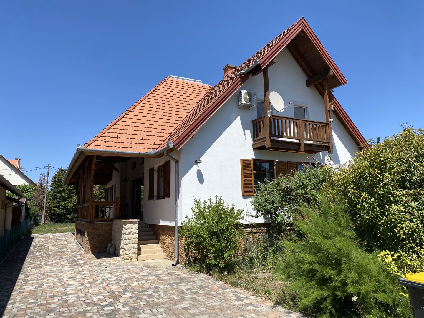 Gyenesdiáson nagyon csendes helyen, német tulajdonostól eladó ez a kiváló állapotban levő akadálymentesített ház. Alul 64m2 garázs és tárolók. A galériázott földszinten (132 m2) hatalmas légtérrel étkező- konyha lett kialakítva valamint nappali szoba. Ezen a szinten van még az akadálymentesített hálószoba fürdővel. A tetőtérben (101 m2) négy hálószoba és egy fürdő-wc zuhanyzóval. A ház kívül hőszigetelt, belül klimatizált, a fűtést gázkazán biztosítja. Az udvarban medence található fedéssel. Kiváló vétel.